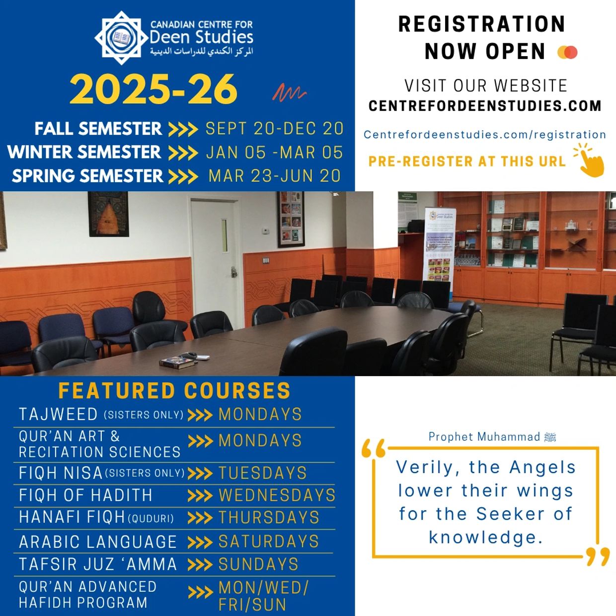 At the Sayeda Khadija Centre Masjid Hall. No online for this class. Open for both males and females above 16 years old.